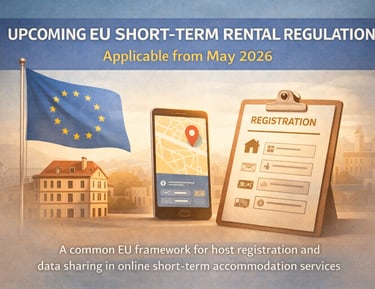 This is the first EU law written specifically for short-term rentals. It creates a common framework for host registration, registration numbers, platform checks, and data-sharing with public authorities. Its main purpose is to improve transparency and enforcement across Member States, while still leaving room for national, regional, and local STR rules. The regulation applies from 20 May 2026.