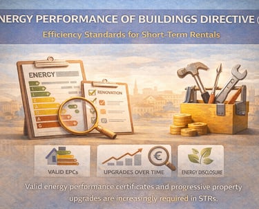 The EPBD is not STR-specific, but it increasingly affects the sector because it raises the importance of energy performance certificates, energy disclosure, and building-renovation standards across the EU. The recast directive, adopted in 2024, strengthens the framework for building efficiency and helps push Member States toward stricter implementation. For short-term rentals, this can influence compliance duties, property presentation, and future upgrade expectations.